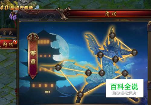 打开角色的面板,内功可抵消角色受到的伤害,消耗内功经验可升级内功层级获得更高的属性,内功经验可通过打怪获得,如图所示