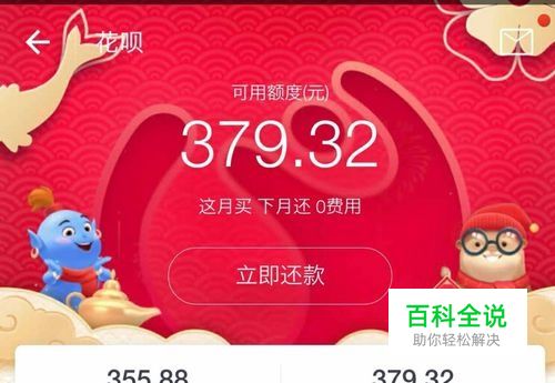 此时就会弹出花呗的首页,在花呗首页的上方会显示你下月需要偿还花呗的金额,我们点击下月应还