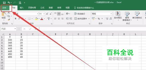 进行一元线性回归分析必须要借助EXCEL的分析工具。此功能可以依次点击“文件”、“选项”、“加载项“启用。