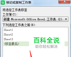 这样就会弹出了一个移动或复制工作表的窗口当中,进行点击列表中的 移至最后 的选项。
