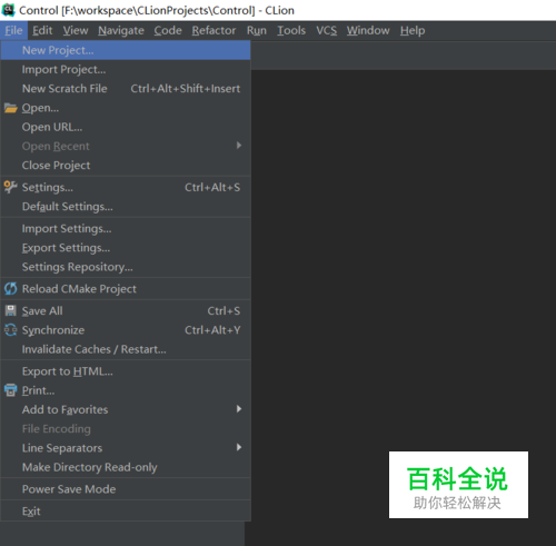 首先,打开Clion,在指定的位置创建一个Project。点击File->New Project。