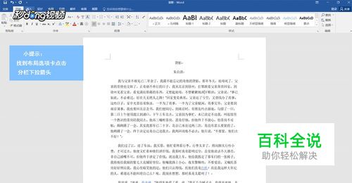 首先点击菜单栏的“布局”,再点击“分栏”的下拉箭头。
