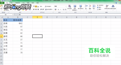 在表一的C列添加一列数学成绩,在C2单元格插入函数