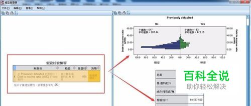 之后弹出一个输出文档查看器,在其中可以看到我们想要的结果。 我们可以看到p值=0.000<0.05,表明拖欠贷款客户与未拖欠贷款客户的负债收入比指标差异显著。