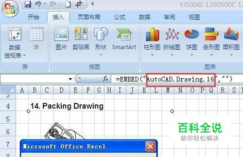 我们先获取本机能正常打开的excel表格图片。打开EXCEL后,单击该图片,获得该图片对应的OLE调用对象。在图中我们可以看到能正常打开的图像调用的OLE对象为AutoCAD.Drawing.17(AutoCAD 2008版本使用的OLESID)