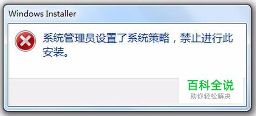 安装工行网银控件或网银助手等软件时,弹出Windows Installer错误提示窗口:系统管理员设置了系统策略,禁止进行此项安装。