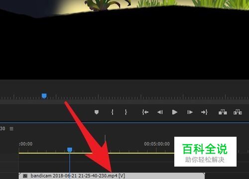 接着我们选中视频素材,高亮显示即为选中状态。这里我们注意当前的素材播放时长。