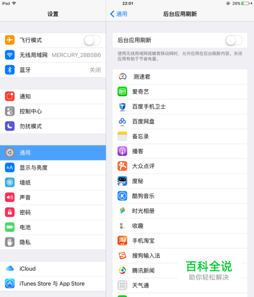 我们先找到后台应用刷新,把后台刷新权限全部关闭。