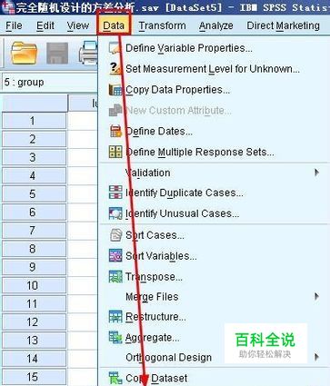 为了分别检验每个分组的数据是否符合正态分布,我们要先将各个组分离(如果你的数据只有一个组那就没必要进行这一步了),如图所示在菜单栏上执行:data---split file