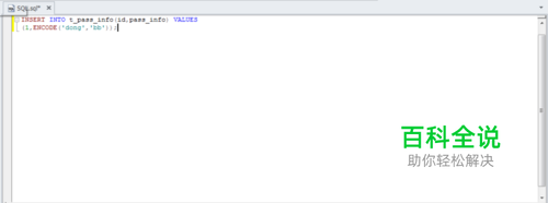 然后,向这个数据库表插入一条数据,代码如下: INSERT INTO t_pass_info(id,pass_info) VALUES (1,ENCODE('dong','bb')); 如下图所示: