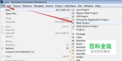 第一步:创建一个javaweb项目。 打开myeclipse file --》new--》web project 具体操作如下图所示: