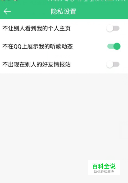 等将不在qq上展示我的听歌动态设置之后,你不管听什么歌,别人都看不到了。