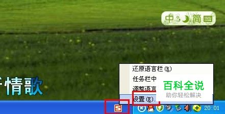 首先点击桌面右下角的语言栏的图标,右键单击,然后点击设置输入法。