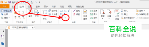 打开PDF阅读器过后,点击菜单栏“注释”这一栏,找到绘图区域中的线条,如下图所示。