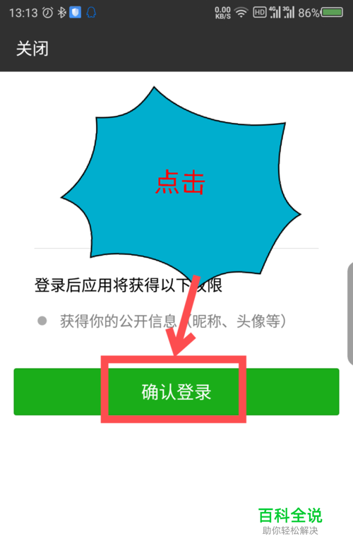 点击微信图标后,打开微信登录界面,点击下面的确认登录。如图所示