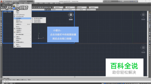 打开CAD,点击左上方功能栏中的视图按键,然后再点击视口按键,点击一个视口,之后CAD页面就只出现一个画面了。