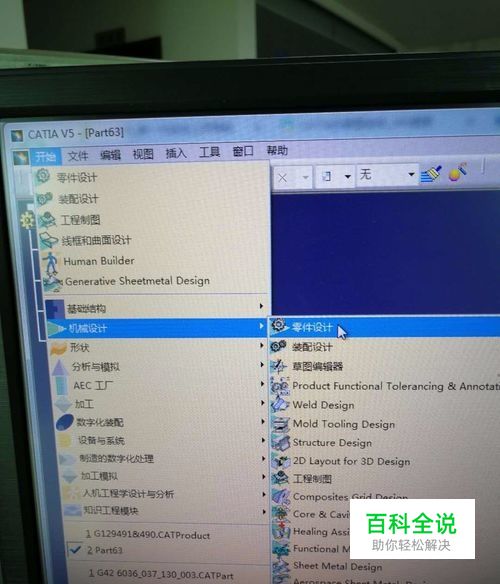 首先,打开CATIA软件,单击【开始】-【机械设计】-【零件设计】,进入零件设计界面。
