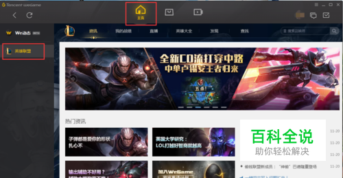打开Wegame,用玩游戏的QQ帐号登录Wegame,进入主界面,在左侧找到【英雄联盟】并点击进入。
