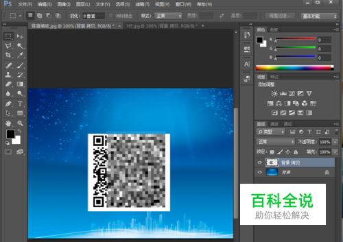 首先,导入需添加二维码的广告图,以及白色底的二维码,并且把二者放到同一编辑框内,记得二维码底色一定是要白色的才行哦