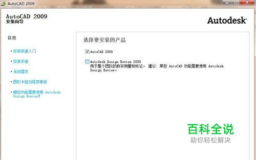 先把下载好的2009CAD安装包解压出来,解压完成后打开文件夹双击setup,弹出的界面选择安装产品