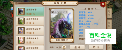 但是呢,在打野之前,你需要知道你想要什么变身卡(只限普通怪物,特殊的会随机掉落),这里举例想要超级狰兽卡,我们只有打狰兽才会给。