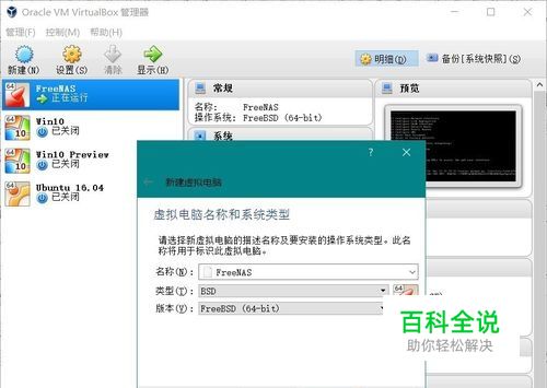 我们先下载并安装VirtualBox,只有区区的120M,但就是这个小软件可以让你虚拟出来一个完整的硬件环境并安装各种系统使用,官方下载地址:virtualbox.org,安装没有什么难的,就和其它软件一路下一步就好,安装完成后启动它,在左上角点“新建”,就可以开始建立我们的第一台虚拟子机了,点击新建后会弹出“向导”,非常简单友好,首先起个名,通常我会用它的使用目的来为它命名,方便日后知道这个太机器是做什么的,比如这里我在“名称”里输入了“FreeNAS”,我打算用这台虚拟机来安装FreeNAS系统来玩玩