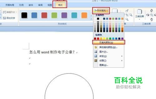 1、首先,打开word软件,我们这里用的是WORD2007(其实word97-2003跟这个操作差不多,就是一些功能位置不同),下面开始选择工具栏“插入“----形状”,在“形状”工具栏中选择”椭圆“,然后同时按下”Sfift键“在用鼠标左键不放,在word中画一个圆。