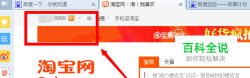 进入淘宝页面后,我们金昂鼠标在我们的账号名称上面停留