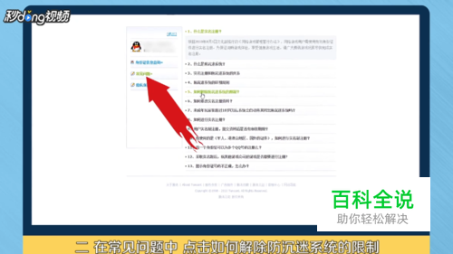 在常见问题中点击“如何解除防沉迷系统的限制”。