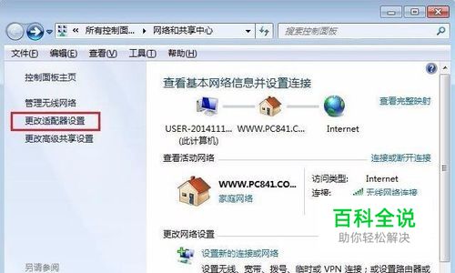 2、如果驱动正常,则检查下无线网络是否被禁用了。具体方法是在桌面上找到网上邻居或网络,在其上右键,然后选择属性,之后点击左侧的“更改适配器”,如下图所示:
