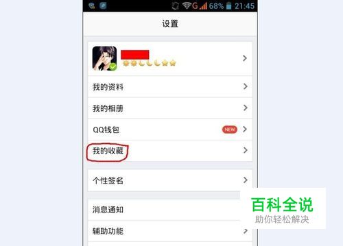 2、点击”设置“——”我的收藏“。清除部分不要的收藏内容。方法跟删除QQ消息一样,选中并向左划手指。