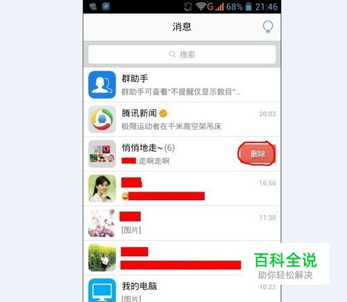 1、点击进入手机QQ。”消息“,选择需要清除的QQ记录,选中并向左划动手指,会出现”删除“,点击”删除“。