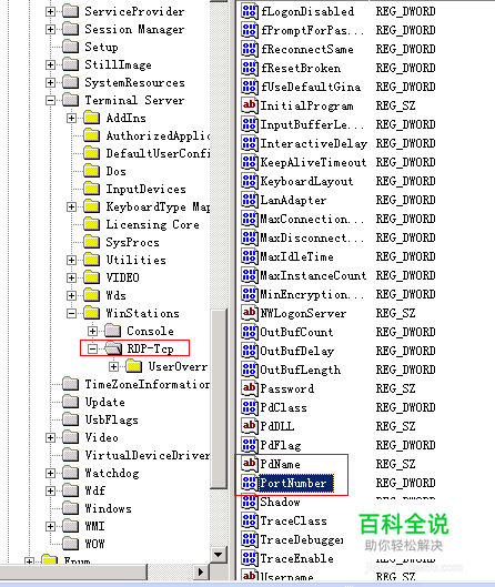 然后用同样的办法打开[HKEY_LOCAL_MACHINE\SYSTEM\CurrentControlSet\Control\Terminal Server\WinStations\RDP-Tcp]