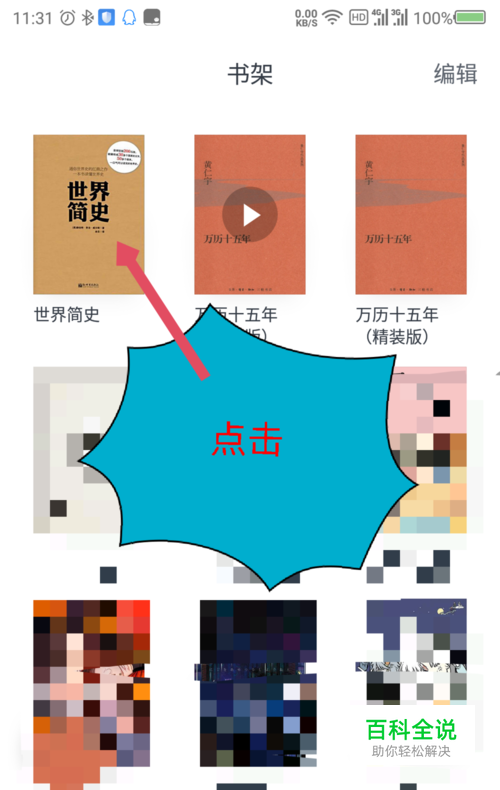 在书架里面,点击要设置朗读声音或者朗读速度的书。如图所示