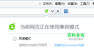 由于部分网页(例如论坛、网银等)在极速模式下出现兼容性问题,显示不正常,这时只能让客户手动换到兼容模式来浏览网站,如下图所示。