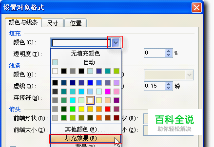 继续在“填充”功能区中单击“颜色”区域右侧的下拉按钮,选择 “填充效果”命令,