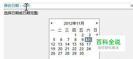 如图,选中桌面模式下的搜索框后,在“搜索”选项卡下可以直接点击内建的固定区间,但是假设要是搜索一个2012/10/15~2012/11/10之间的这种非固定区间,在Windows 8下该如何进行呢? 在上面看到截图中我们先点选一下“今天”,接着回到桌面模式下的搜索框,将鼠标定位到浅蓝色字段上,此时会出现浮动窗口,允许你进行更多日期的选择。