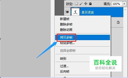 点击第1帧,然后按住shift再点击第17帧,将所有的帧数全部选中,接着点击动画帧最右上角的图标(下图1所示位置),点击其中的"拷贝多帧";