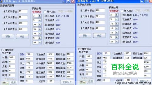 100武70体的孩子同,499速时,6378血。而70武100速的孩子,498速时,6159血。 结论:血敏加点,满速孩子优于满体孩子。 一种是血敏耐型 ,以500速,1200防为例,对比图如下: 70武100体的孩子,血4607,防1201,速498 100武70体的孩子,血4672,防1206,速499 结论:血敏耐加点,100武的孩子优于70武的孩子。 由上图可以看出,无论是血敏加点,或者血敏耐加点,各项属性对比,100武70体的孩子都优于70武100体的孩子。