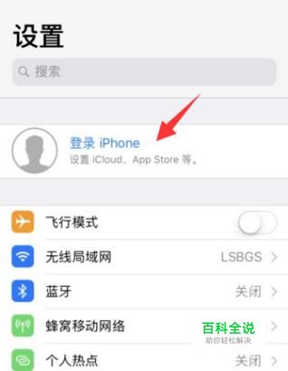进入设置界面之后,点击页面顶部登录iPhone,iCloud、App Store等,并且登录iPhone手机Apple ID账号,如图所示。