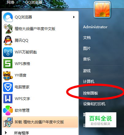 开始菜单,”控制面版“