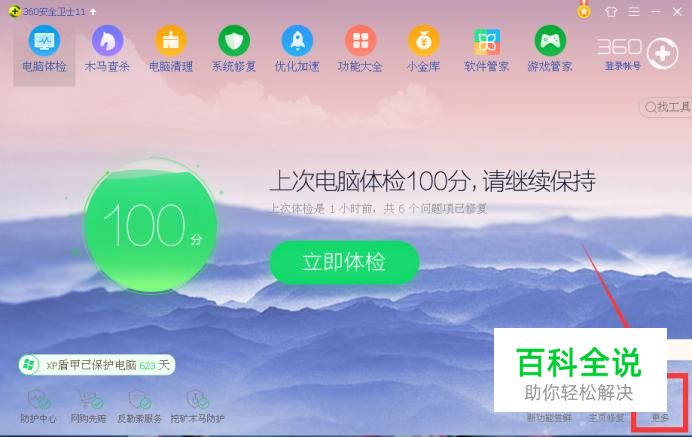 打开360安全卫士,如果电脑上没有可以到360官网进行下载安装,点击“更多”。