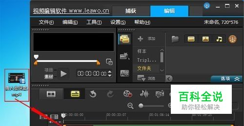打开视频编辑软件,进行“编辑”窗口。将需要编辑的视频文件,直接拖移至软件下方时间轴面板的视频轨道上。