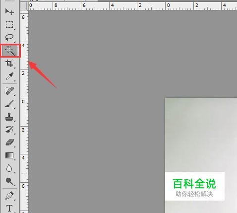 打开ps之后我们按下Ctrl+O键在弹出的对话框内选择需要的图片素材,然后在工具箱内找到魔术棒工具,如图所示: