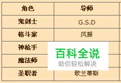职业技能导师 每个角色的技能导师都不同,18级转职之后,新技能只能到角色职业相对应的职业导师处才能学习和升级(所有角色通用的技能则在赛丽雅处学习)。