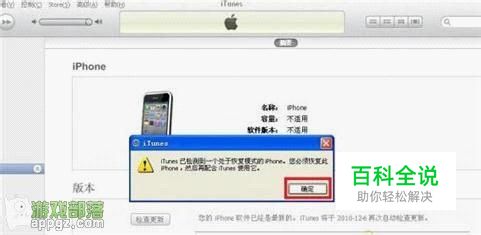 打开iTunes。这时iTunes会提示检测到一个处于恢复模式的iPhone,我们点击确定就可以了。接下来我们按住键盘的Shift键,点击iTunes上的“恢复”按钮,松开Shift键,在弹出的固件窗口中选择你要恢复的固件版本就OK了。