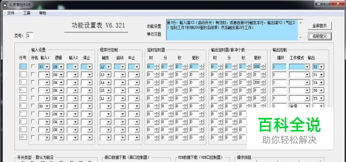TPC8-8TDK开关量传感器控制器,采用表格设置、无需编程,轻松实现具有开关量传感器的设备的自动化控制,人人都会使用。 该控制器具有8路开关量输入和8路开关量输出控制端,设有方便实用的定时功能。 表格设置,无需编程。采用表格设置的方式实现所需的定时控制功能,能够方便快速地实现设备控制,数分钟即可完成简单的定时功能设置, 非常适合不熟悉编程的人员使用。 根据实际工作的需要通过表格设置可以实现:程序控制、顺序控制、同步控制、定时控制、手动控制、自动控制、位置控制、循环控制、单次控制、计数控制、超时报警、不到位报警等各种自动控制功能。步进电机控制可以实现长度控制、角度控制、按时间控制、方向控制、位置控制、速度控制、回原点控制等运动控制。 输入端可以连接开关或光电开关、接近开关、限位开关等开关或开关量传感器作为输入控制,通过简单的设置即可方便地实现开关控制、开关启动、停止、位置控制、定时控制及程序控制等功能。 每路输出端具有24V/300毫安的输出驱动能力,可以直接驱动24V电磁阀,每行程序设有一个延时定时器和一个输出定时器,定时范围:0-24小时。在应用中根据所需的控制功能,设置程序控制定时器的各项功能,能够快速实现所需的应用功能,达到程序控制设备的目的。 主要技术参数 1、输入输出路数:TPC8-8TDK型8路输入/8路输出,16路控制器 2、光电隔离:全部输入和输出光电隔离 3、供电电源:直流24V/2A(强烈推荐使用开关电源) 4、输出方式:NPN型晶体管集电极开路输出,输出有效:导通,输出无效:开路 5、输出电压:连接负载情况下,输出有效时:接近0V;输出无效时:24V 6、输出电流:每路输出电流300mA 7、输入电压:0-24V范围内的开关量信号 8、输入控制:低电平有效或开关对地闭合有效 9、设置行数:功能设置行数≥60行 10、下载接口:USB接口 11、外形尺寸:145mmX90mmX40 控制器操作应用十分便捷,无需编程,非常适合不熟悉编程的人员用于设备控制之用。 使用功能设置表设置所需功能,简单的控制功能几分钟就可以设置完毕。下图是功能设置表,包括输入设置、逻辑关系设置、输出设置、延时设置、输出定时设置、循环设置、程序行控制的设置等,设置功能一目了然。 新版本的功能设置表,采用表格设置汉字显示的方式,设置所需功能,简单的机床控制功能几分钟就可以设置完毕。下图是控制器的功能设置表,包括输入设置、逻辑关系设置、输出设置、延时设置、输出定时设置、循环设置、程序行控制的设置等,设置功能一目了然。下图是功能设置表,在功能设置中以汉字显示当前行的设置功能。 下图是自动生成的汉字显示全部设置功能的窗口功能设置的基本方法:1、设置启动方法:开机启动(不需要不用勾选),或者选择输入端; 2、设置输出端:选择Y输出端; 3、设置定时器:设置延时定时器(不需要不用设置);设置输出定时器(输出定时器工作时输出端有输出); 4、设置程序行控制:触发项:设置转到下一个动作的行号(不需要不设置);启动项:设置启动本行的行号(不需要不设置); 5、设置停止动作:停止项:选择停止输入端或行号(不需要不设置);中止项:选择中止本行的行号(不需要不设置)。下图设置为一个动作,X3输入启动,Y2输出1秒钟,然后触发第2行。还是比较简单吧。 基本功能: 通过设置能够实现:程序控制定时器、顺序定时控制、 逻辑控制、点动继电器、锁存继电器、点动开关、软启动开关、自锁开关、延时开关等功能。 应用领域: 以下示出通用接线示意图,输入可以连接开关、接点、感应开关等多种开关信号,输出可直接驱动电磁阀、继电器、指示灯、电磁线包,电阻等多种电器负载。实际使用中要根据设备控制的需要,来选择输入和输出连接的开关、传感器及输出驱动的负载,输入和输出完全根据实际需要来灵活安排,没有顺序的限制。