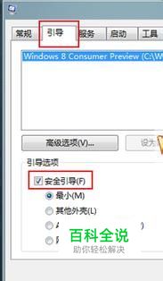 在进入系统后,按Win+R运行输入msconfig确定选择——引导——把安全引导勾选中确定重启后就可以进入Win8安全模式。