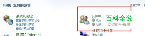 进入控制面板之后,点击“用户账户和家庭安全”中的“添加或删除账户”项;