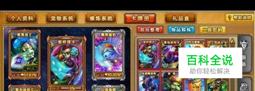 魔蚁之巢:不得不说弹弹堂中每套卡牌的风格都极尽华丽,绝对能让玩家爱不释手!魔蚁之巢套卡由魔蚁女王卡(主卡)、蓝魔蚁卡(副卡)、红魔蚁卡(副卡)三张卡牌组成。能够激活的属性为:在魔蚁之巢副本中血量上限增加200点。 啵咕王城:马迪亚斯将具有强大力量的卡牌分散藏于啵咕王城中,靠你的双手去寻找它们吧!装备任意2张卡牌后激活属性为:在啵咕王城副本中每次轮到自己回合激怒值将额外增加5点;装备全套卡牌后激活属性为:在啵咕王城副本中每次轮到自己回合激怒值将额外增加10点。